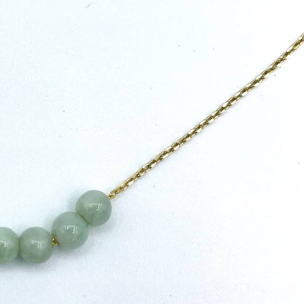 14k goldplated ketting met 6 groene jade steentjes. Lengte is 1 maat en is 43 cm.