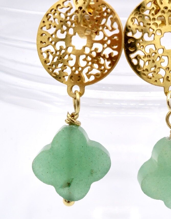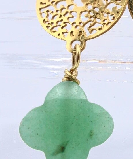 Groene klaver aventurijn aan goudkleurige hanger van stainless steel.