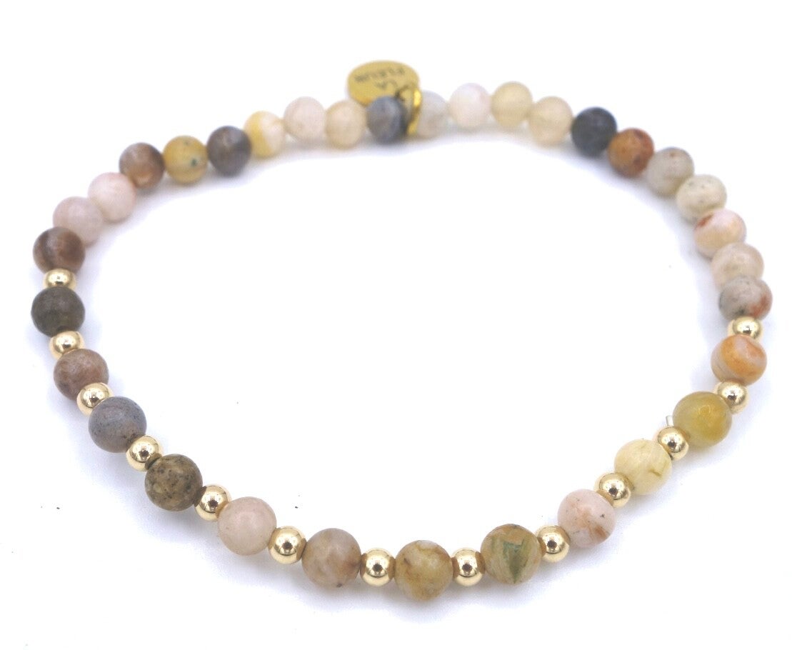 4 mm picture jaspis, of landschapjaspis kralen met 3 mm gouden kraaltjes