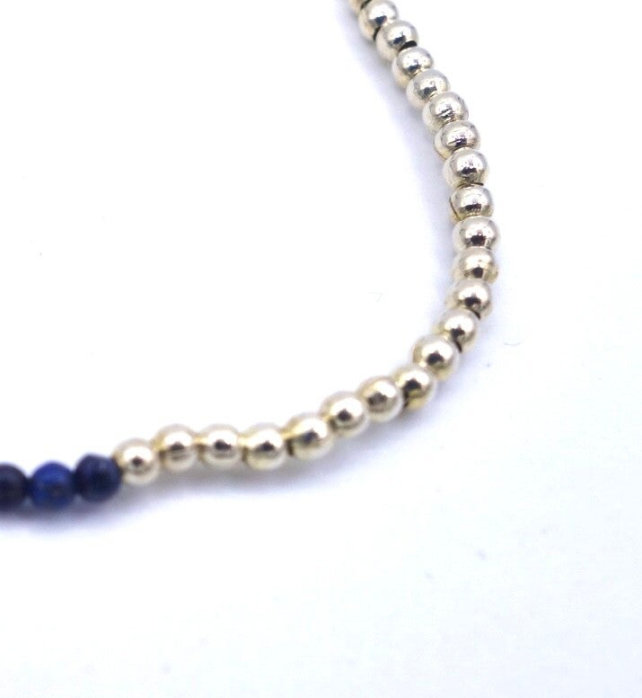 2 mm kleine zilveren kraaltjes met lapiz lazuli kraaltjes.