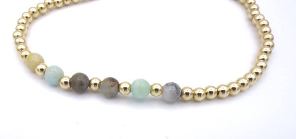 14k goldplated kraal à 3 mm met 6 amazoniet stenen.