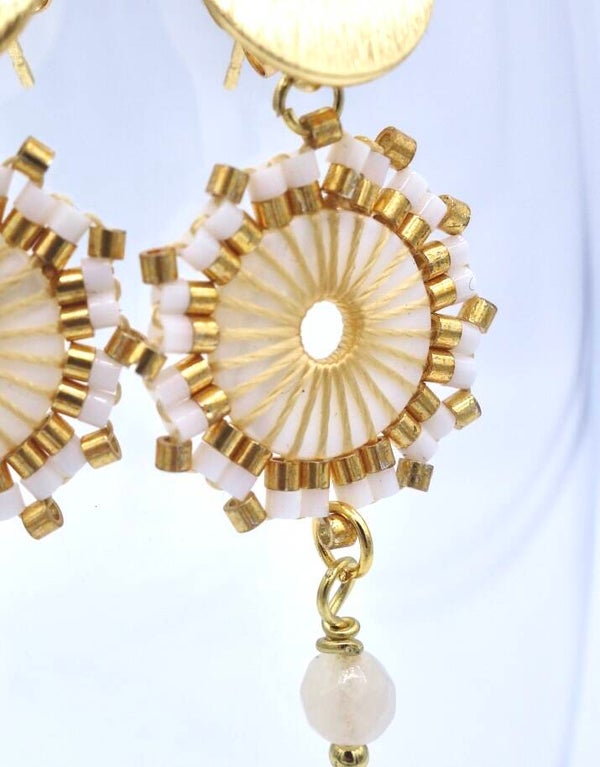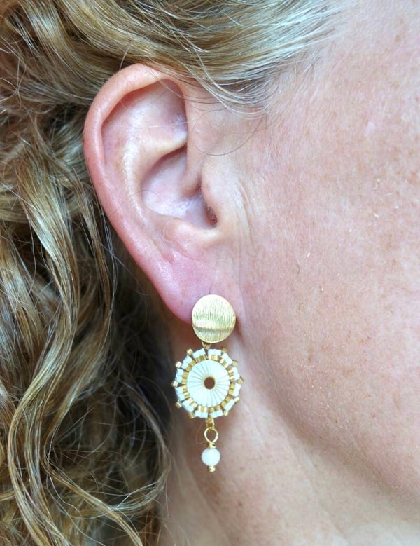 Witte boho mini oorbel met rvs oorsteker en 316 L stainless steel achterkantje