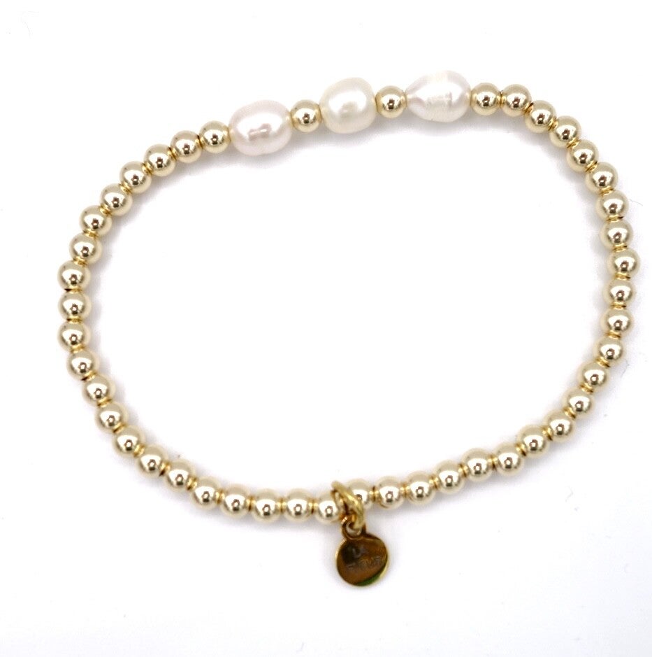 4 mm grote gouden kralen en 3 grote zoet waterparels