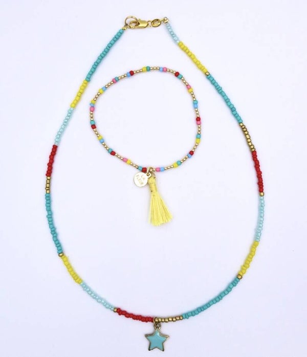Multicolor zomer armbandje met 14k goldplated kraaltjes.