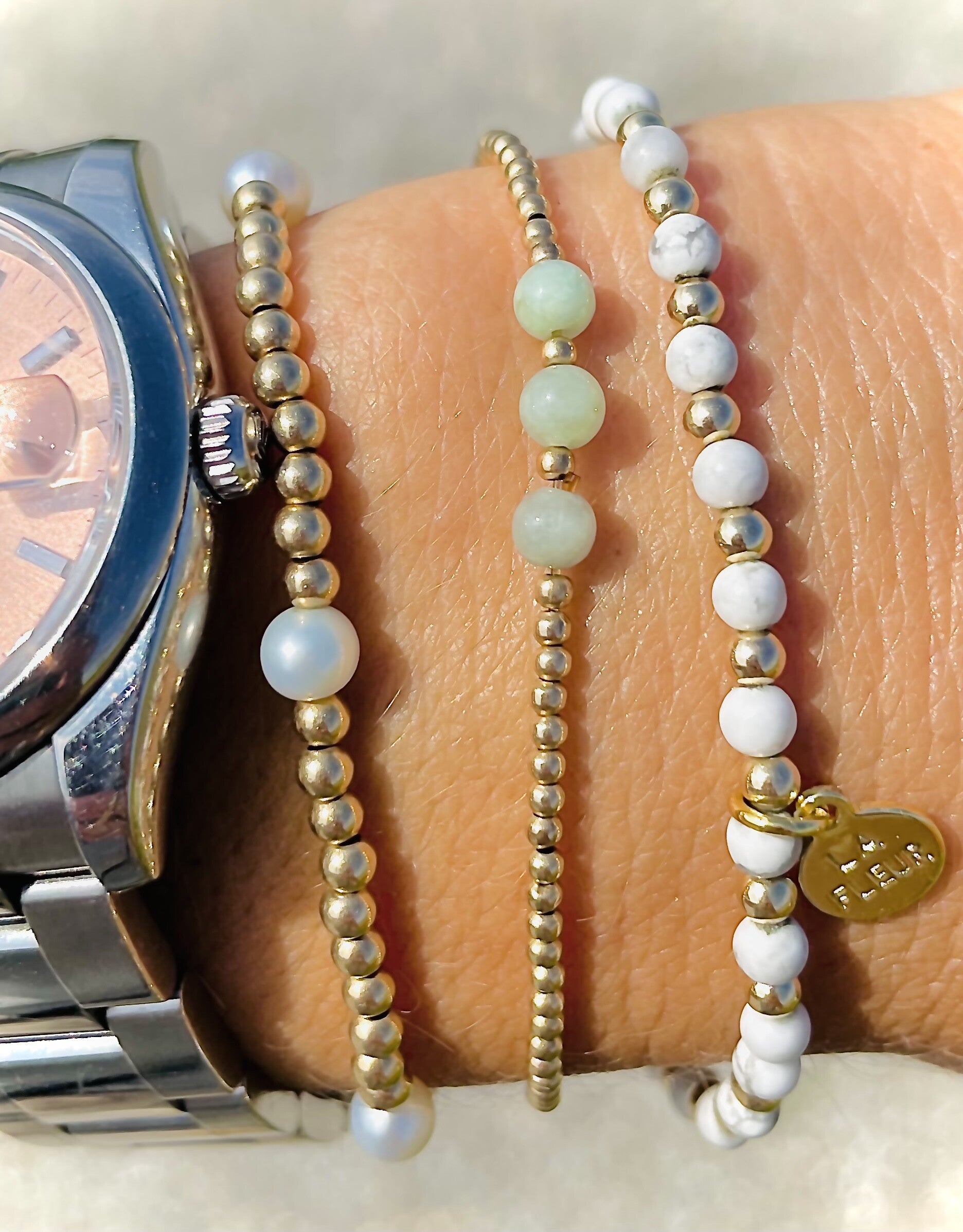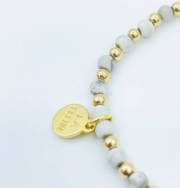 Witte howliet afgewisseld met 3mm 14k goldplated kralen.