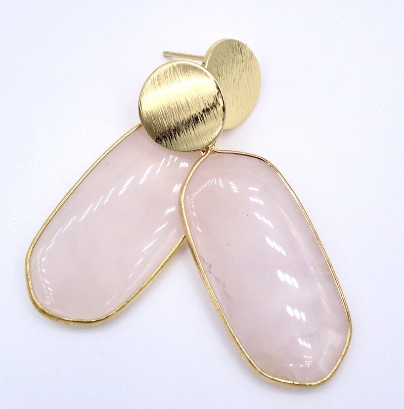 Rozenkwarts in 14k goldplated zetting. De oorsteker heeft een zilveren steker met een 316L stainless steel achterkantje. De voorkant van de oorsteker is ook van een edelstaal met goldplating.