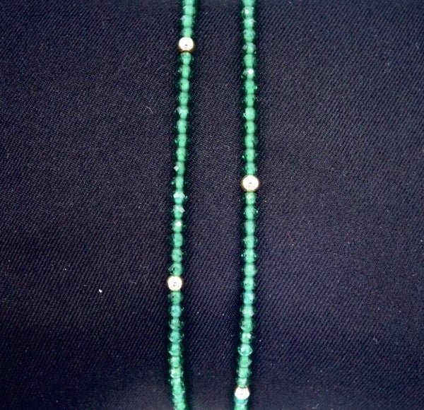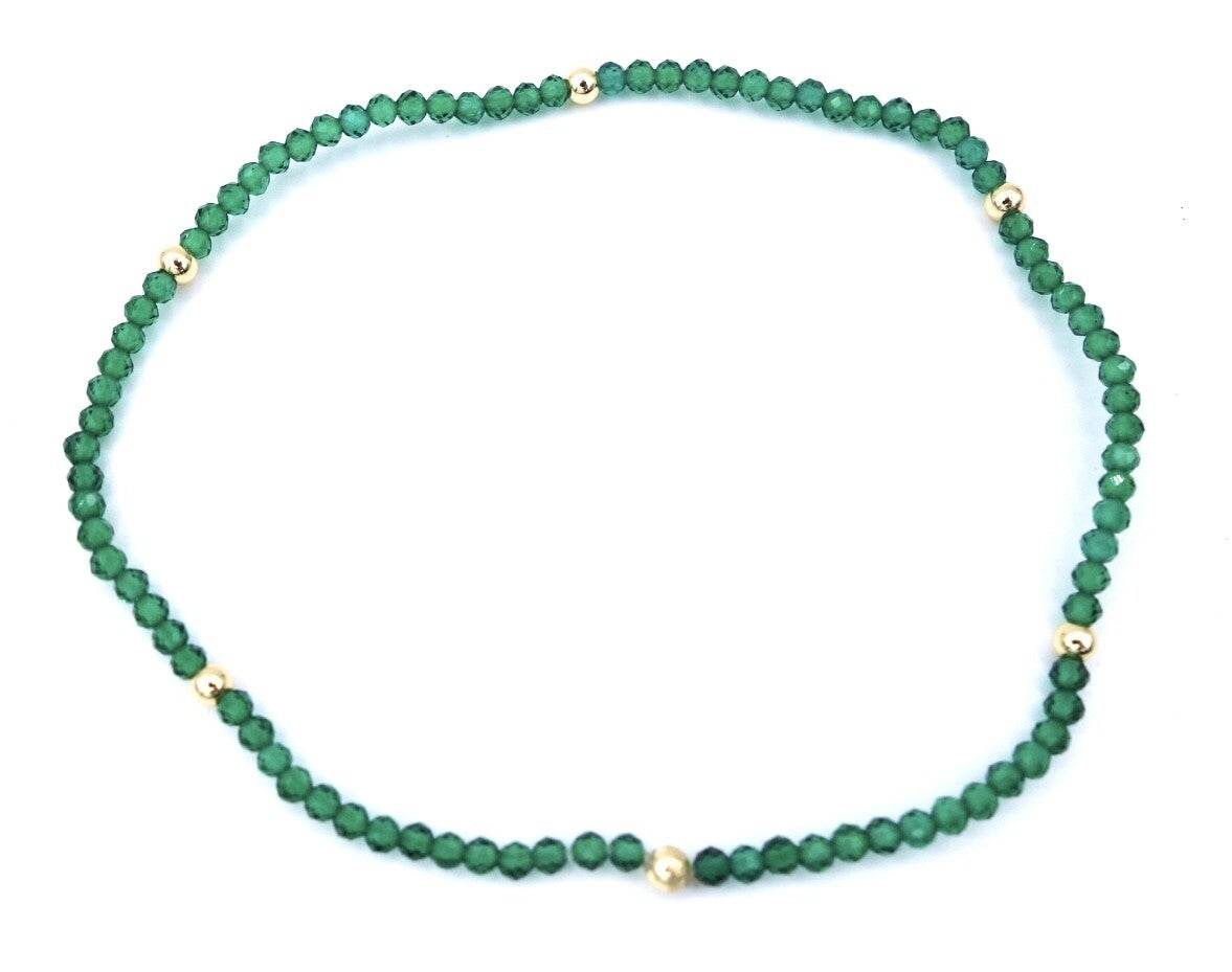 Groen facet geslepen spinel steentjes met 2,5 mm goldplated kraaltjes.
