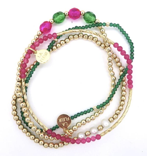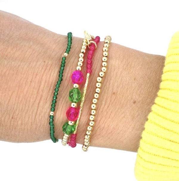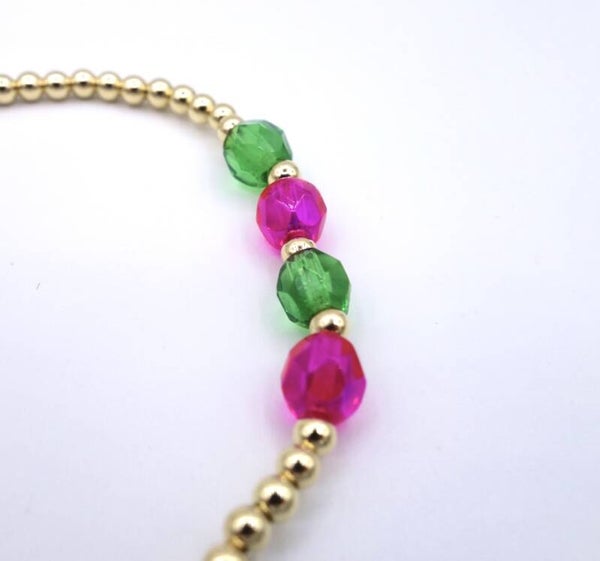 Frisse kleuren groen en fuchsia roze facet geslepen glaskralen met 3 mm 14k goldplated kralen.