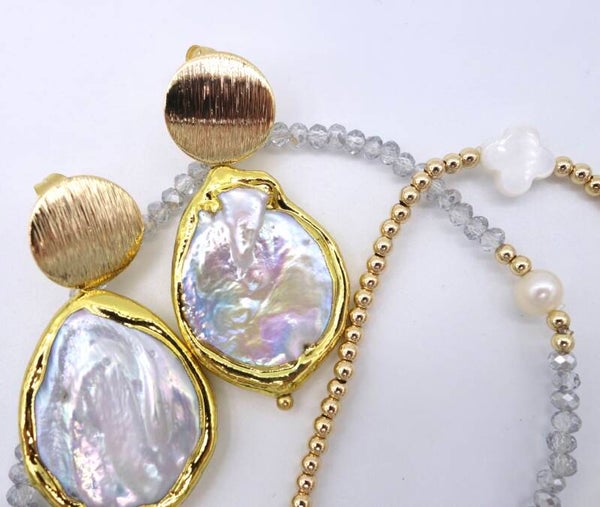 Parelmoer oorhangers met goldplated stekers